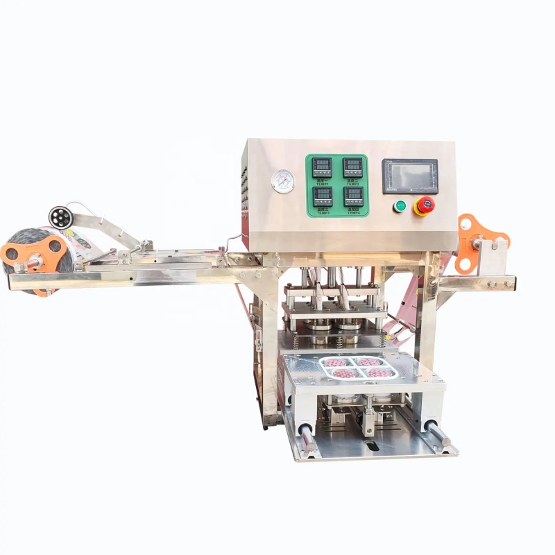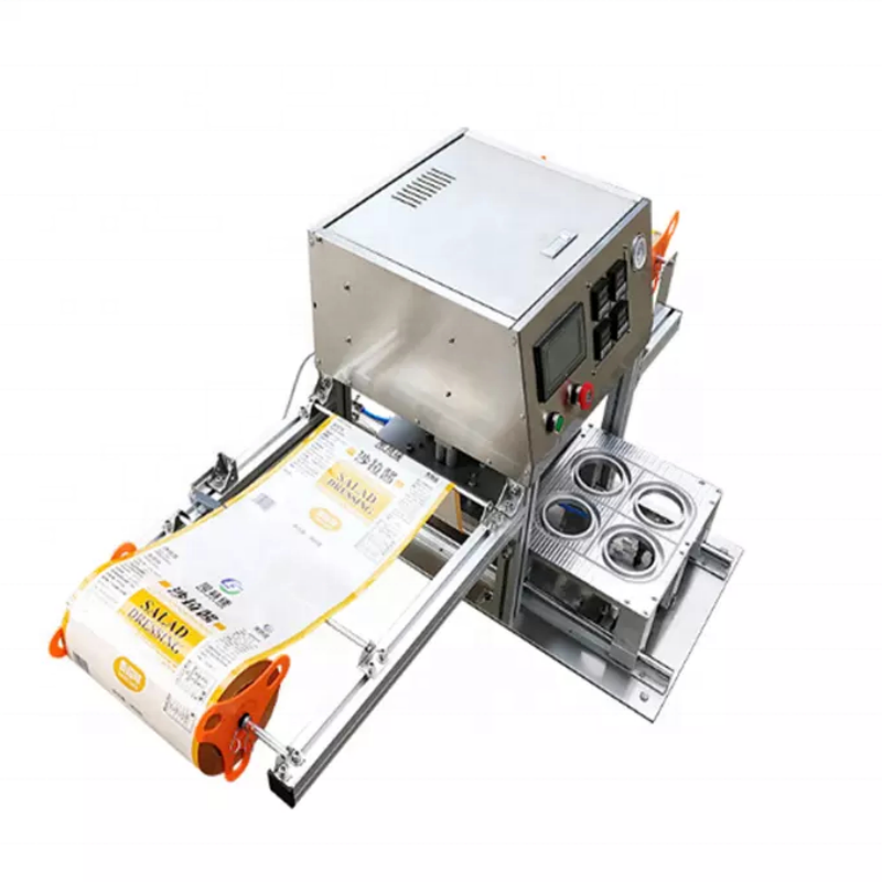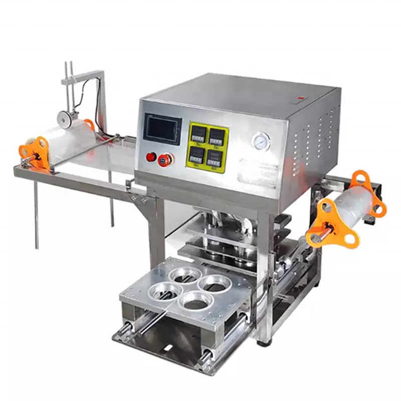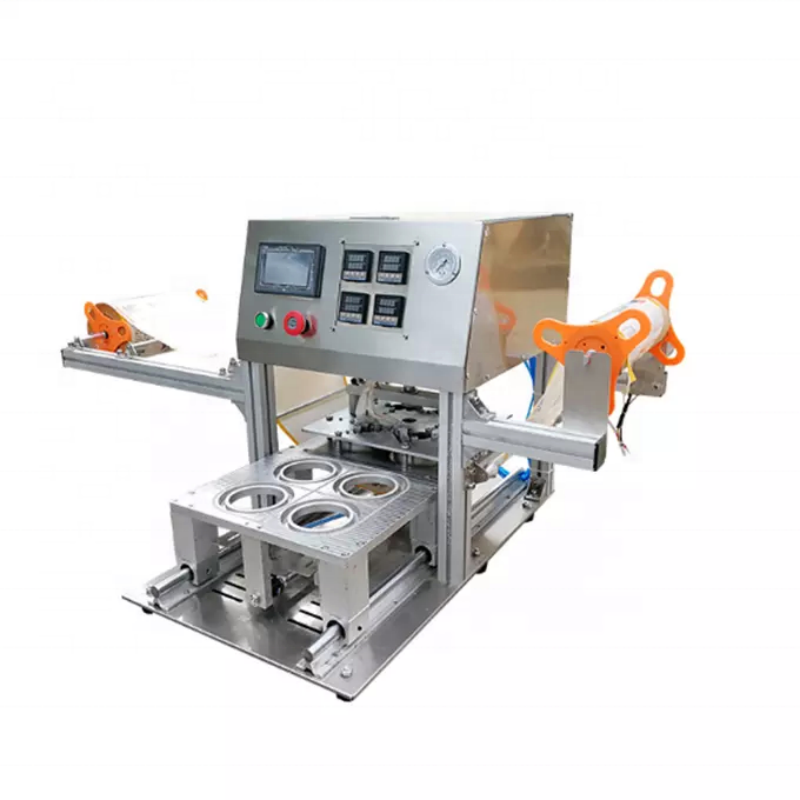 4 Cup Boba Milk Tea Cup Sealing Machine Juice Instant Noodle Jelly Yogurt Tray Disposable Paper Plastic Packaging Equiment