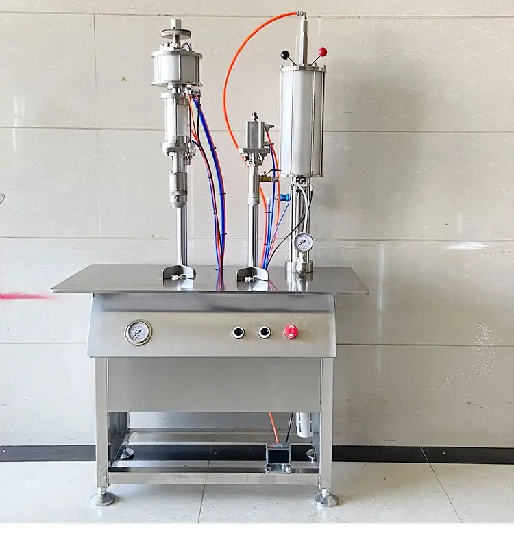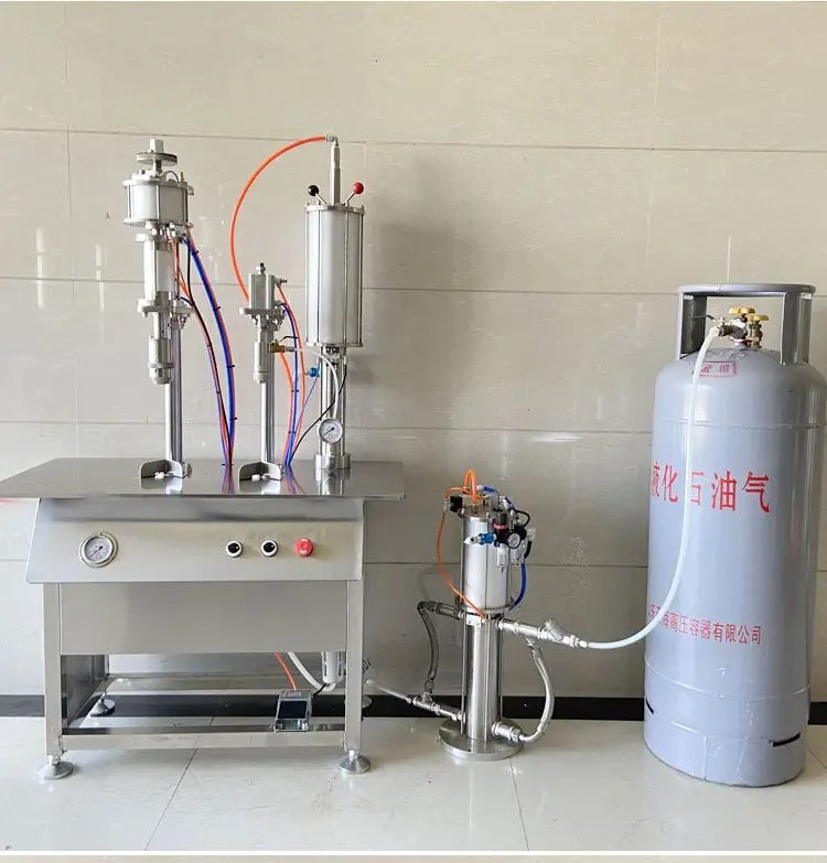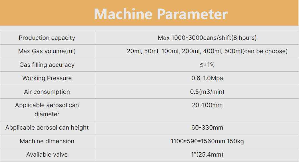 This machine is a small machine in semi-automatic equipment, composed of sealing and inflating, artificial irrigation, one person control, the machine covers an area of small, simple operation. Filling international one-inch mouth specifications of tinplate, aluminum aerosol tank wide, small area, less labor, improve the degree of automation. It is widely used for small scale household aerosol and laboratory production.