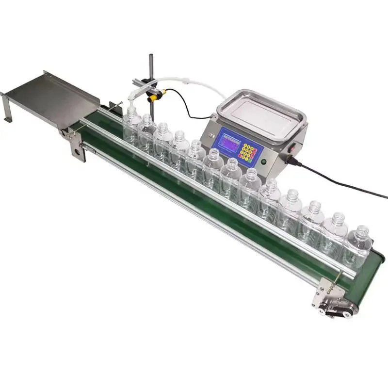 Automatic 4 head small conveyor belt liquid filling conveyor, assembly line operation, intelligent control, 4 head high efficiency filling. One machine multi, powerful, anti - drip design, quantitative packaging, accurate filling. High quality stainless steel material, simple operation, factory direct sales