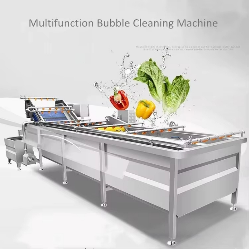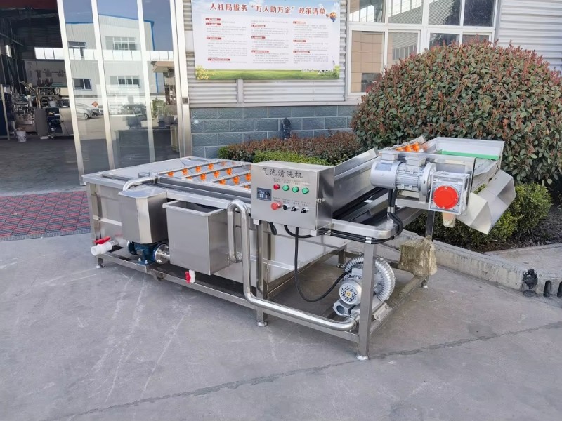 The Multifunction Bubble Cleaning Machine adopts the methods of surfing,bubbling and spraying water to clean fruits and vegetables.it can completely clean the soil on the surface of fruits and vegetables and can also add an appropriate amount of sterilizing reagents to remove the pesticide residues on the surface of fruits and vegetables.