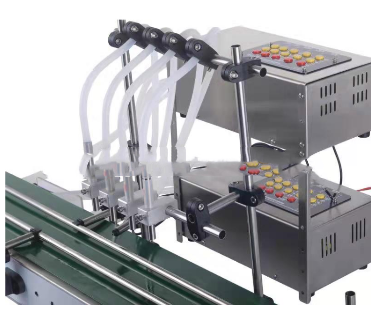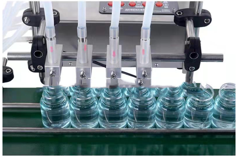 Desktop Automatic Quantitative Conveyor Four Heads Glass Bottle Liquid Water Beverage Filling Machine for Oil Cosmetic Beverages