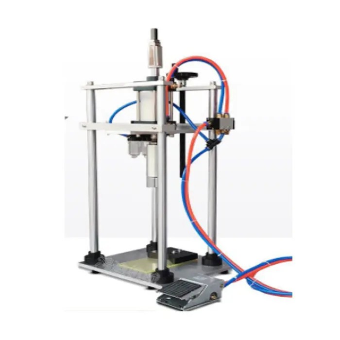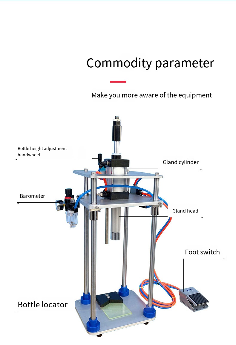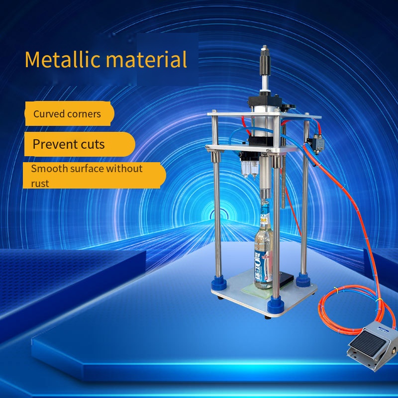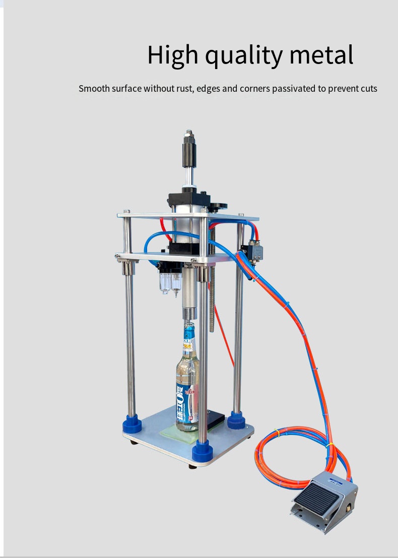 Brewery Beer Crown lid Pneumatic Bottle Capping Pneumatic Beer Soda Bottle Capper Machine.This capping machine operated by pneumatic. With positioning devices and standard capping, the capping machine is easy to operate and suitable for caps of crown caps and capping head height is adjustable according to the bottle height up and down