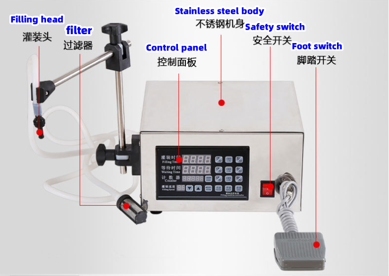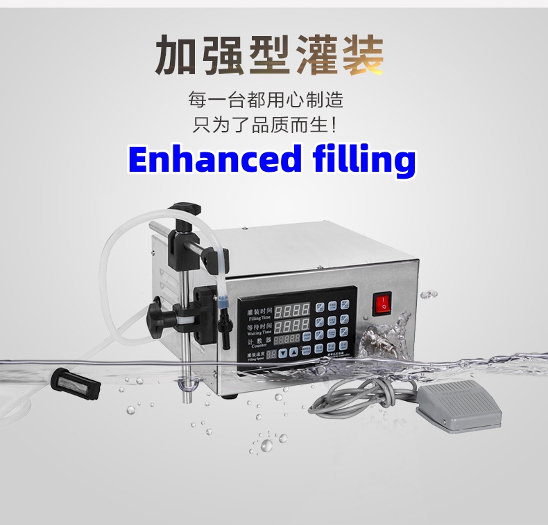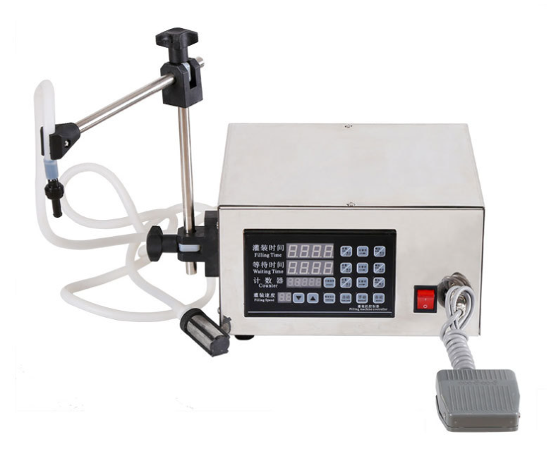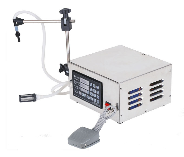 This numerical control liquid filling machine is compact and portable. The casing uses stainless steel so it is durable and easy to clean. The machine has a self-prime pump that can suck in the liquid from your container and then output via the nozzle. It can be used to fill many different types of clear thin liquid,including water, olive oil, fuel, drinks, vinegar, milk etc.